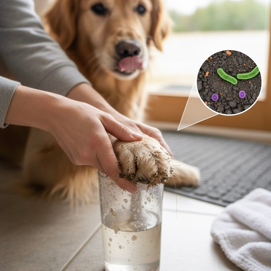 Dirt and bacteria trapped in paws can very easily lead to painful infections — a quick clean after walks keeps them healthy and vet-free.